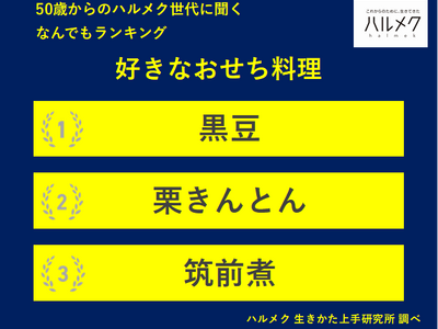 【50歳からのハルメク世代に聞く なんでもランキング】50歳以上の女性が選ぶ「好きなおせち料理」TOP3は「黒豆」「栗きんとん」「筑前煮」