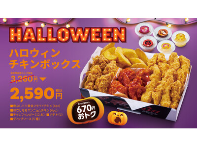 【bb.q オリーブチキン】今年のハロウィンはトリック・オア・チキン!人気の韓国チキンを詰め込んだ「ハロウィンチキンボックス」積み上げ価格より670円おトクな2,590円(税込)で登場♪