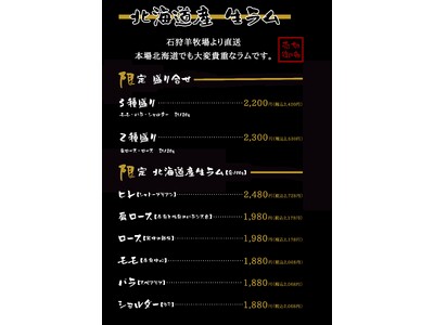 北海道石狩ひつじ牧場産ラム肉の提供開始。 特別メニューが関東に登場いたします。