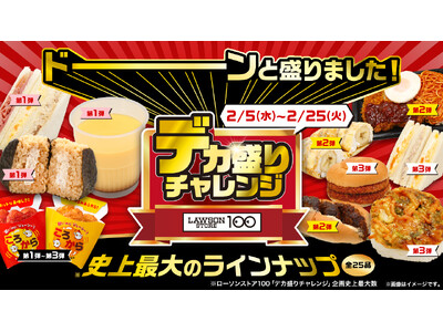 ローソンストア100史上最大*のラインナップ お値段そのままの商品を含む、"全25品"がサイズアップ!「デカ盛りチャレンジ」を2月5日(水)より実施!