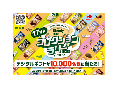 今年も10,000名様に選べるデジタルギフトが当たる!全17種類の多彩なフレーバーから自分好みを見つけて集めて応募しよう! 味の素AGF株式会社(代表取締役社長:島本 憲仁 以下、味の素AGF...