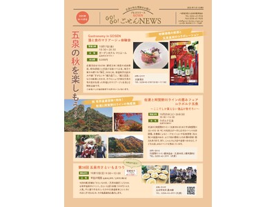 一般社団法人五泉市観光協会は、五泉市の旬な観光グルメイベント情報をお届けするプレスリリース「GO!GO!ごせんNEWS」の1011月号を発行しました。 五泉の秋は、自然食文化イベントが盛りだく...