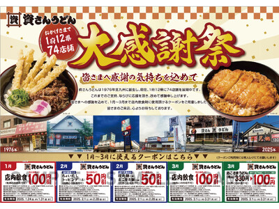 北九州で約40年に渡り愛される「資さん(すけさん)うどん」を展開する、株式会社資さん(本社:福岡県北九州市、代表取締役社長:佐藤 崇史)は、大感謝祭を開催します。 皆さまからの日頃のご愛顧に感...