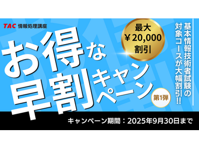 【2026年度のFE合格を目指す】資格の学校TAC情報処理講座が2026年度春期合格目標コースをリリースしました!9/30までの期間限定でなんと…最大20,000円割引!