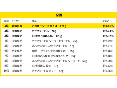 270万人のレシートデータから見る「買い物動向」調査 9月、全国・地方別のカップ麺売れ筋ランキング