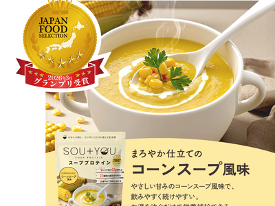 これから迎える暑い季節、食欲がない日でも続く。"スーププロテイン" という新習慣。SOU+YOU コーンスープ風味が「ジャパン・フード・セレクション」グランプリ受賞!!