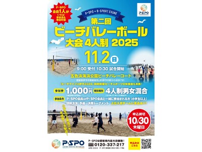 愛媛県伊予市で「PSPO 第2回ビーチバレーボール大会」を開催。BSPORT EHIMEと共に地域交流を促進し、参加者全員に南道後温泉ていれぎの湯入浴券、上位入賞者には豪華景品をプレゼント! ...