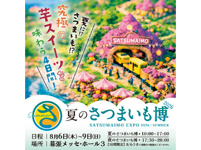 今年の夏も、千葉県幕張メッセでお待ちしています♪ さつまいも博実行委員会(代表:石原健司、東京都新宿区西新宿7726)では、8月6日(木)~9日(日)まで、千葉県幕張メッセのホール3におきまし...
