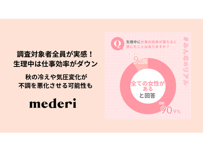 【mederi調査】調査対象者全員が実感!生理中は仕事効率がダウン - 秋の冷えや気圧変化が不調を悪化させる可能性も