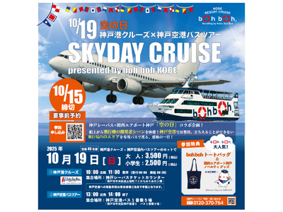 開催日時:2025年10月19日(日) 神戸シーバスboh boh KOBEは、10月19日(日)に、空の日イベントとして、神戸港クルーズ×神戸空港バスツアー『SKY DAY CRUISE』開...