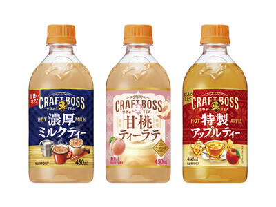 「濃厚ミルクティー」と「特製アップルティー」も発売中 サントリー食品インターナショナル(株)は、「クラフトボス 世界のTEA」シリーズから、ホット商品「クラフトボス 甘桃ティーラテ」を10月2...