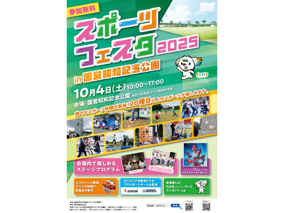 10月4日(土曜日):国営昭和記念公園みどりの文化ゾーン ゆめひろば10月13日(月曜日祝):東京体育館 陸上競技場スタジオ屋外広場 「スポーツで創る、東京の未来」をスローガンに、「スポーツフ...