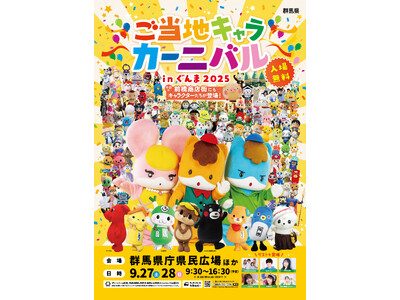 キャラクター参加数は過去最大数!特別ゲストとのスペシャルステージや各種会場コンテンツを満喫しよう! 群馬県は3度目の開催となる「ご当地キャラカーニバルinぐんま2025 」を9.27(土) 9...