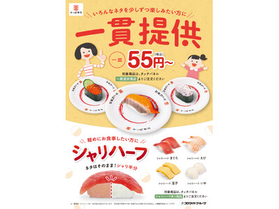 一貫提供とシャリハーフで選ぶ楽しさを! 2025年9月4日(木)~全国のかっぱ寿司にて コロワイドグループのかっぱ寿司(カッパクリエイト(株) 本社:神奈川県横浜市、代表取締役社長:山角豪)は...