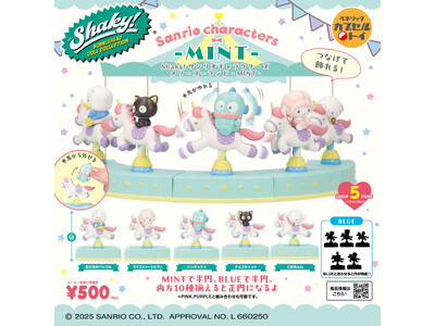 大好評のサンリオキャラクターズのバブルヘッドドールの新色「Shaky! サンリオキャラクターズ メリーゴーランド -MINT-」が全国のカプセルトイ自販機にて2025年10月中旬より順次発売!