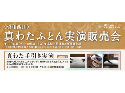 手仕事の技が目の前に【昭和西川】高松三越本館5階寝具売場にて「真わたふとん」実演販売会実施10月15日(水)~10月21日(火)