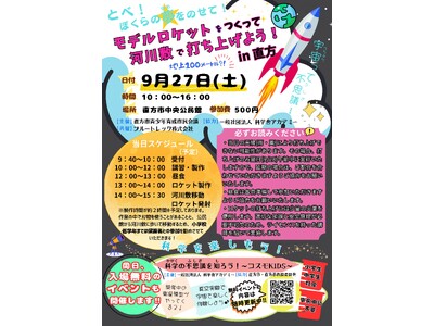 自分だけのロケットを作って、大空へ打ち上げよう 子どもたちの科学への興味を育み、ものづくりや挑戦する喜びを体験できるイベントとして、 「とべ!ぼくらの夢をのせて!モデルロケットをつくって河川敷...