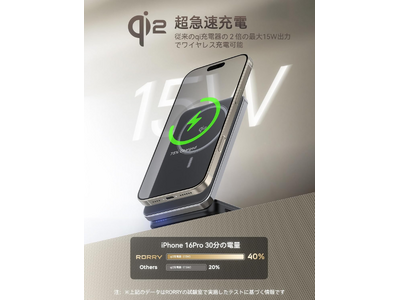 【期間限定50%オフ】RORRY、QI2認証15Wワイヤレス充電対応新型モバイルバッテリー「M8」登場