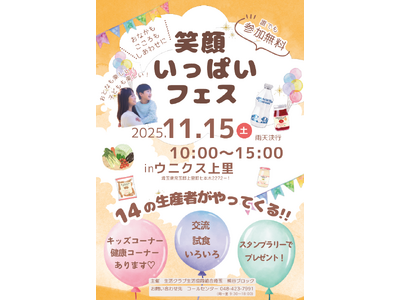 試食や子どもと楽しめる射的お菓子すくいも! 生活クラブ生活協同組合埼玉(本部:埼玉県川口市、以下生活クラブ)は、2025年11月15日(土)にウニクス上里(埼玉県児玉郡上里町)にて、『笑顔いっ...