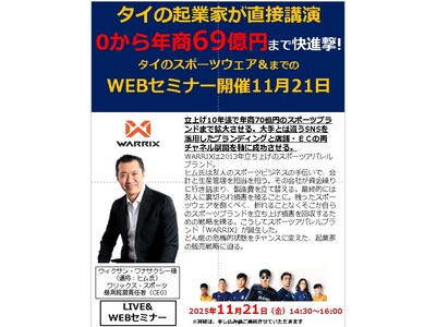 【東南アジア タイスポーツウェア業界の異端児! WARRIX社】創業10年強で年商70億円を達成!CEOヒム氏が直接ゲスト講師に登壇するLIVE&WEBセミナーを11月21日に緊急開催!