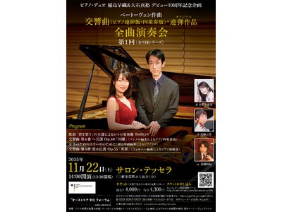 ベートーヴェンの交響曲をテーマに、その編曲版という珍しい分野を切り開く企画公演をお聴き逃しなく! ピアノデュオ 稲島早織&大石真裕 デビュー10周年記念『ベートーヴェン交響曲(ピアノ連...