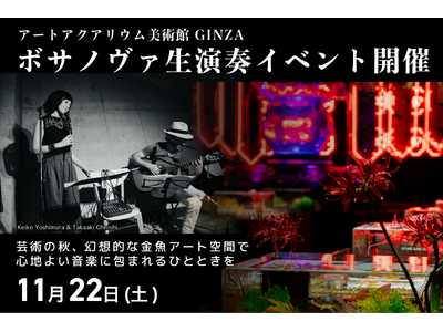 11月22日(土)1日限りの特別イベント開催 アートアクアリウム美術館 GINZA(所在地/東京都中央区銀座三越内)では、芸術の秋を彩る特別イベントとして、館内にてボサノヴァ音楽の生演奏をお楽...