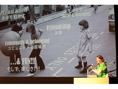 アリスファーガソン氏がPlaying Outの実践を紹介。住宅街における市民主体のまちづくりや、子どもがみちを始めたとした地域で遊び育つことをテーマにトークを展開しました。 一般社団法人TOK...