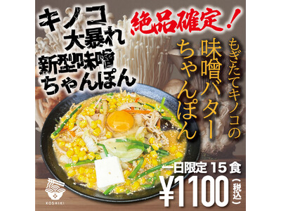 福岡の老舗「ちゃんぽん亭コシキ」から、秋の味覚を贅沢に詰め込んだ新作登場。4種のキノコと特製ブレンド味噌が織りなす"旨味の極み"「もぎたてキノコの味噌バターちゃんぽん」が期間限定で大好評販売中...