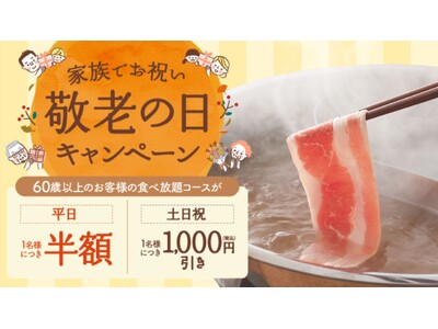【しゃぶしゃぶ温野菜】敬老の日は、ありがとうを囲む"しゃぶしゃぶ時間" ~60歳以上のお客様は食べ放題が「平日半額 / 休日1,000円引き」~