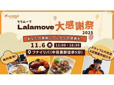 日本上陸1年!配達アプリのララムーブ、「Lalamove大感謝祭」を11月6日(木) に中目黒で開催