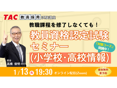 【TAC教員資格認定試験】オンラインセミナー「教員資格認定試験セミナー(小学校・高校情報)」を2026/1/13(火)に開催!