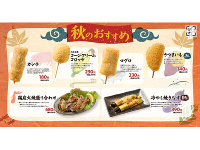 【食欲の秋 串カツ田中の秋】秋の新メニューが9月11日より販売開始!大人気の「さつまいも」串の復活や秋冬の定番「ちりとり鍋」など計14種類!
