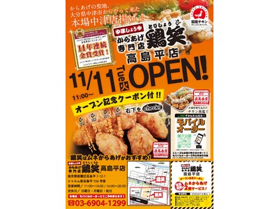 【鶏笑】からあげ専門店「鶏笑(とりしょう)高島平店」11月11日(火)オープン!お得なキャンペーンも同時開催!