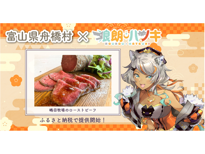 日本一小さい村、富山県舟橋村がVtuber「狼朗ハツキ」とコラボ!嶋田牧場のローストビーフをふるさと納税の返礼品として提供します。