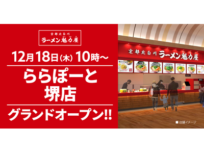 「ららぽーと堺店」のオープンを記念し、京都背脂醤油ラーメンを特別価格にてご提供いたします。幅広い年代の方に食べていただける魁力屋自慢の看板商品です。 京都北白川ラーメン魁力屋をチェーン展開する...