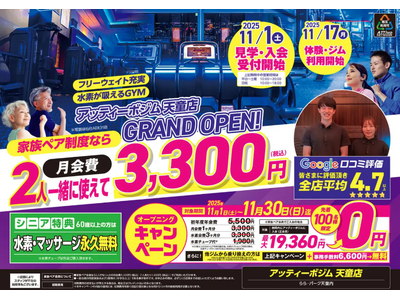 山形県4店舗目となる「アッティーボジム天童店」が、2025年11月1日(土)オープン。宇宙をテーマに、地域に根付く"ものづくりのまち天童"で、心と身体を整える新感覚フィットネス空間が誕生します...
