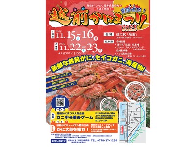【福井県越前町】「越前かにまつり2025」を11月15日(土)・16日(日)、22日(土)・23日(日)の全4日間、道の駅越前にて開催!