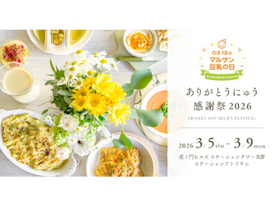 パワーアップして5日間の開催決定!マルサン豆乳全ラインナップが試飲できる"豆乳 BAR"が今年も登場「03月12日はマルサン豆乳の日ありがとうにゅう感謝祭2026」3月5日(木)から虎ノ門ヒルズで開催
