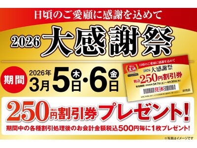 【餃子の王将】2日間限定!税込250円割引券がもらえる!「2026大感謝祭」開催!!