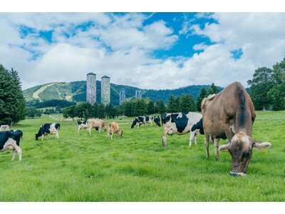 ~春を迎え、牛たちが再び放牧地へ!牛と一緒にお昼寝できる新スポット「牧草ベッドステーション」が6月に誕生~ ファームエリアで放牧されている牛 北海道の大地を感じるネイチャーワンダーリゾート「星...