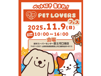 株式会社綿半ホームエイド(長野県長野市 代表取締役社長:永岡幸春)は、2025年11月9日(日)に綿半スーパーセンター富士河口湖店で『PET LOVERSフェス』を開催いたします。 『PET ...