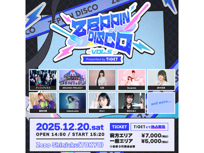 「ZEPPIN DISCO Vol.5」が2025年12月20日(土)に、東京Zepp Shinjukuにて開催されます。チケットはイベントプラットフォーム「TIGET」にて販売中です。 多彩...