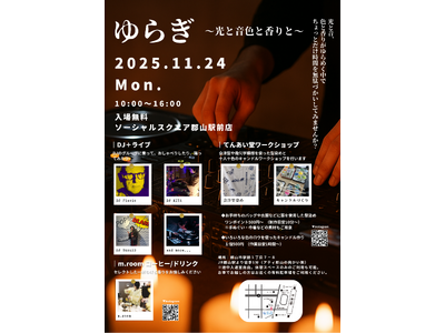 ソーシャルスクエア郡山駅前店(運営:NPO法人ソーシャルデザインワークス 代表理事:北山剛)にて、2025年11月24日(月)に、音楽とワークショップイベント『ゆらぎ~光と音色と香りと~』を開...