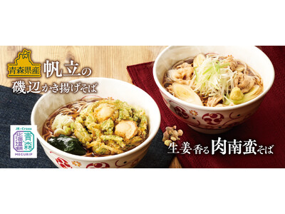 毎年大人気!昨年9万食販売!青森県産帆立を使用した磯の香り豊かな「青森県産帆立の磯辺かき揚げそば」と寒い時期にからだ温まる「生姜香る 肉南蛮そば」を販売!