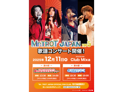 12月11日(木)にClub MixaでミスタートロットジャパンTOP5による歌謡コンサート開催決定!本日よりチケット先行受付開始!