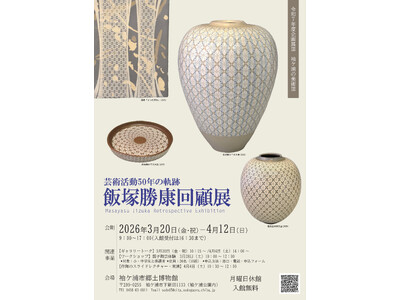 ~市内在住の陶芸家で、第一線で活躍される飯塚勝康氏の作品を展示公開~ 企画展III「袖ケ浦の美術III 芸術活動50の軌跡 飯塚勝康回顧展」ポスター 飯塚氏は市原市に生まれ、アメリカの大学大学...