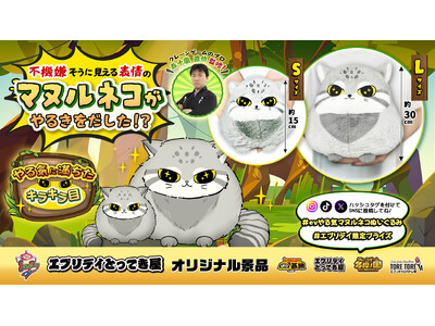 "やる気スイッチ"を感じるキラキラの瞳!愛嬌たっぷり「やる気マヌルネコぬいぐるみ」がエブリデイオリジナル景品として登場!