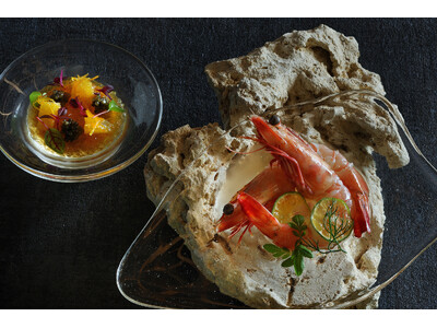 ~島のハーブが香る蒸留酒で漬け込んだ車エビに、熟成和牛とフランス料理の技法で昇華したタコス。島の食文化と滞在が融合する、新たな美食体験~ KUNUSHINA香る車エビと島ニンジンのムース 各施...