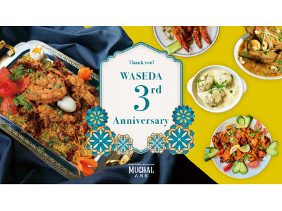 ハラールインド料理レストラン「ムガル」早稲田店が3周年を迎えます。感謝をこめて特別メニューとノベルティを提供
