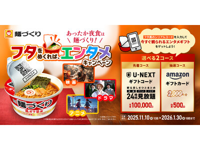 東洋水産株式会社(本社:東京都港区、社長:住本憲隆)が2025年11月10日(月)から開始するキャンペーン「あったか夜食は麺づくり!フタをめくれば、エンタメキャンペーン」において、「UNEXT...